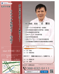 演題名:「リウマチを知ろう・学ぼう-関節の痛むを正しく診断する-」